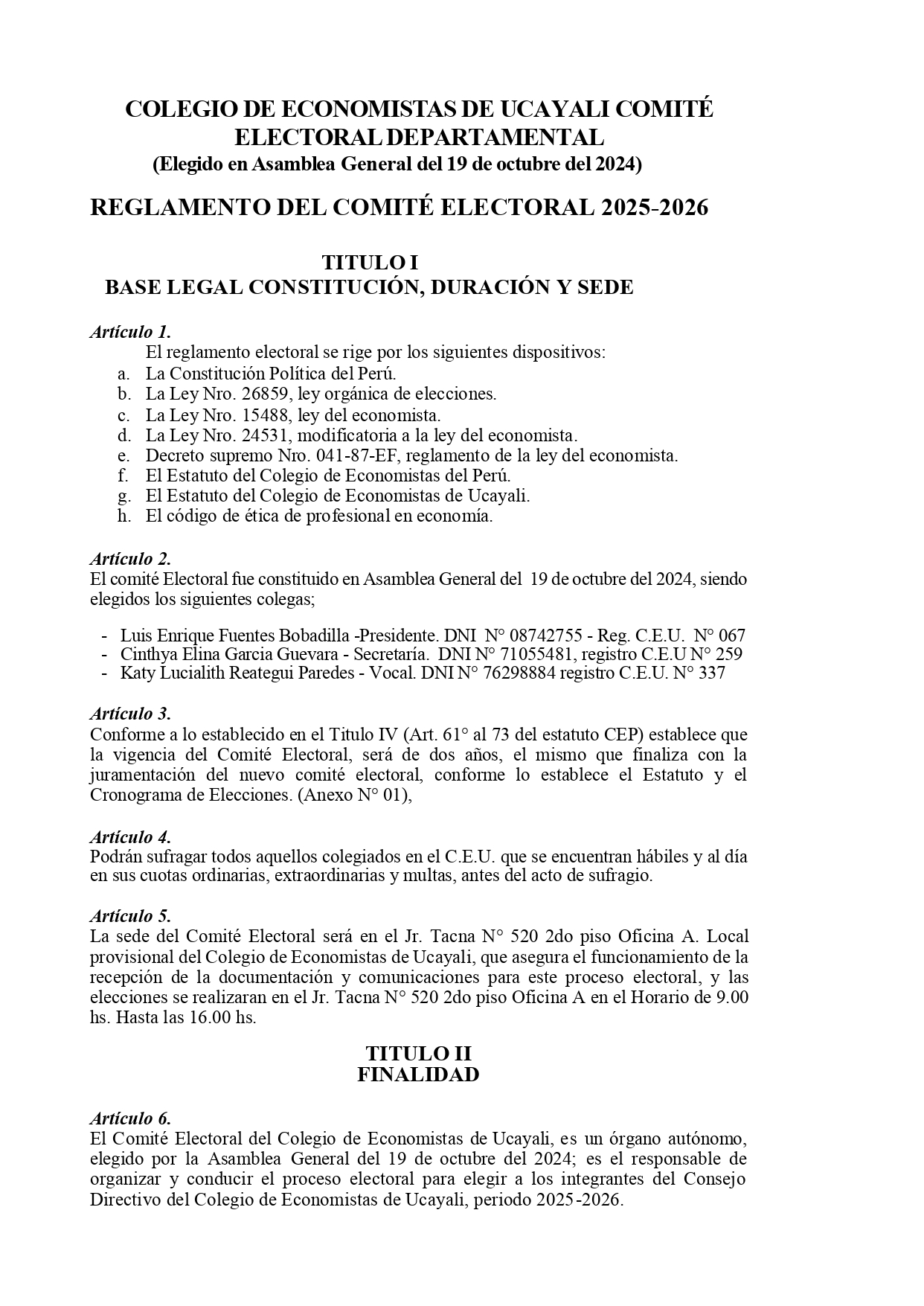 REGLAMENTO DEL COMITÉ ELECTORAL 2025-2026