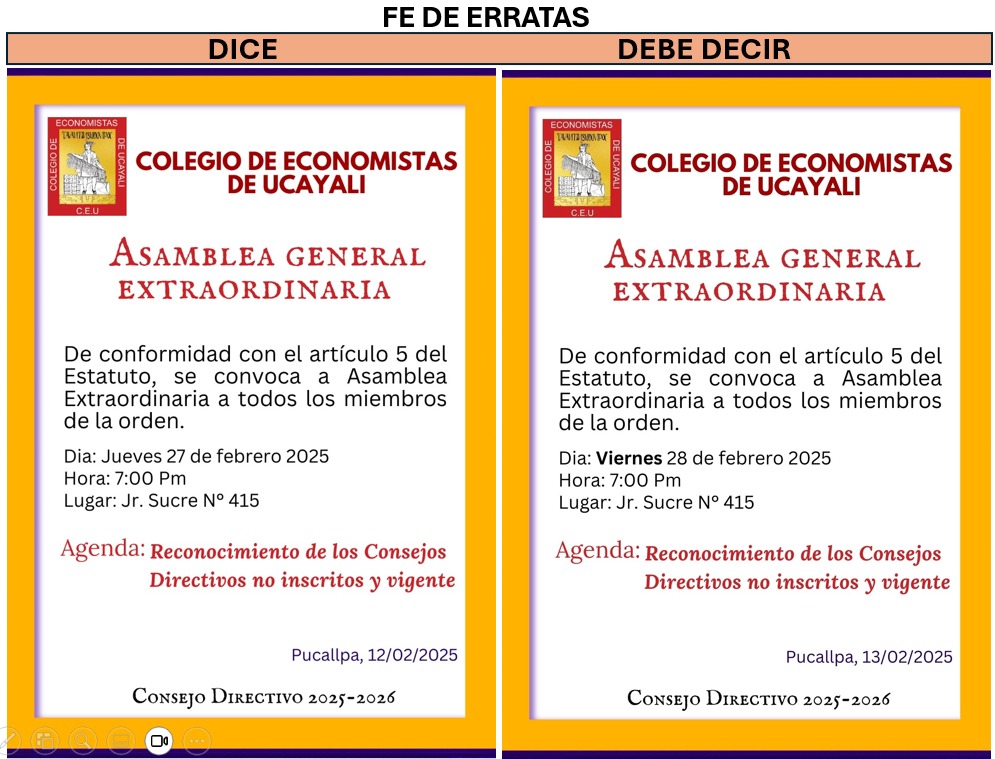 FE DE ERRATAS – Asamblea General Extraordinaria