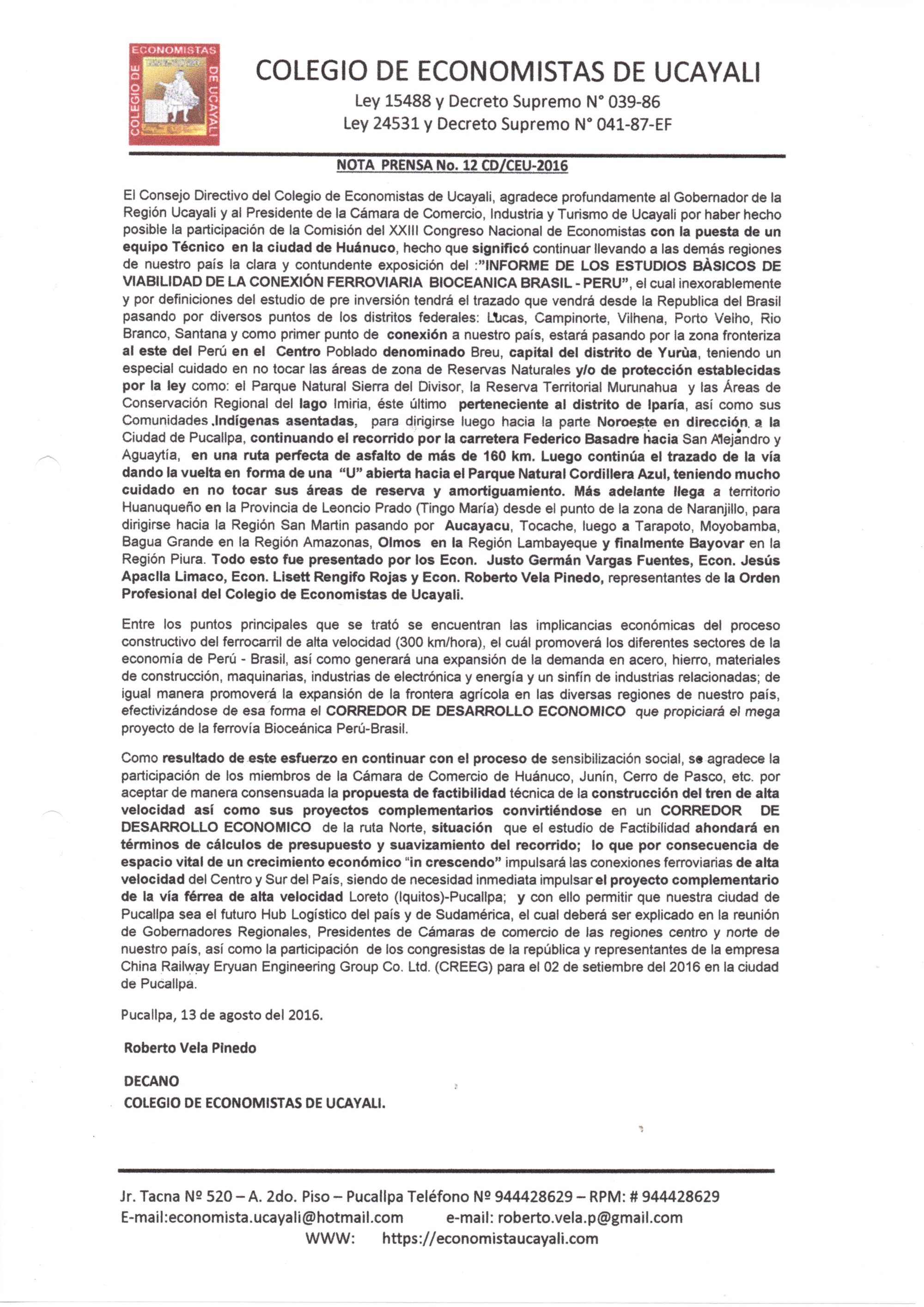 El Colegio de Economistas de Ucayali, es una persona jurídica de derecho público sin fines de lucro, que de conformidad con la LEY N° 15488 y su modificatoria LEY N° 24531, así como sus respectivos reglamentos y demás dispositivos legales aplicables, representa en la región UCAYALI la PROFESION DEL ECONOMISTA. La sede de la institución, está ubicada en el jr. Tacna Nº 520, de la ciudad de PUCALLPA, distrito de CALLERIA, provincia de CORONEL PORTILLO y región de UCAYALI. Ver todas las entradas de Colegio de Economistas de Ucayali
