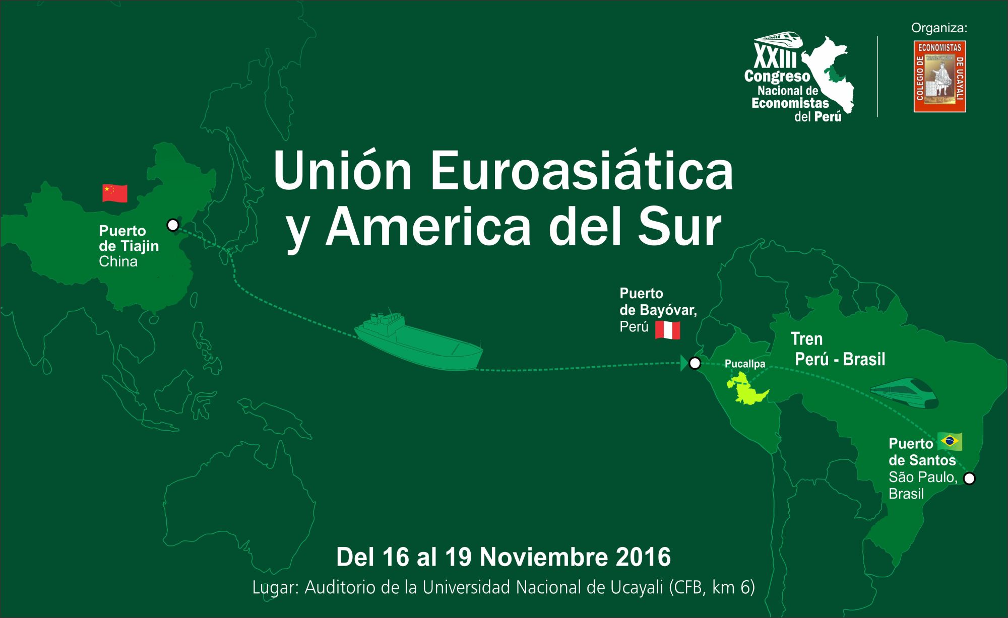 Se invita al público general al XXIII Congreso Nacional de Economistas a desarrollarse los días 17-18-19 de noviembre del 2016, denominado “ FERROVIA TRANSCONTINETAL: SU IMPACTO EN LA AMAZONIA Y EN LA ECONOMIA DEL PERU” a llevarse a cabo en el auditorio de la Universidad Nacional de Ucayali en la ciudad de Pucallpa